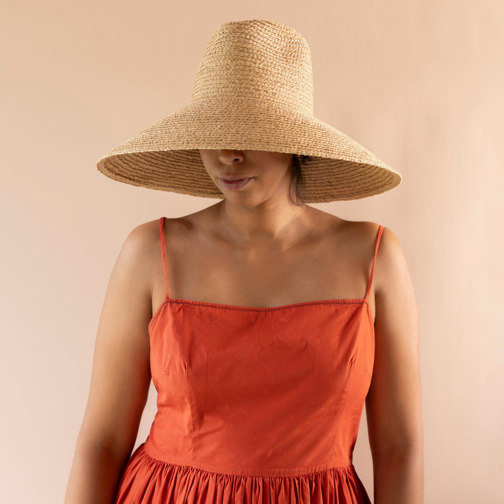 Please avoid getting the hat very wet or submerging it in water. Raffia can absorb moisture, which may weaken fibres or distort shape. If your hat does get wet: blot gently with a soft towel, reshape while damp, then air-dry (out of direct sunlight or heat).